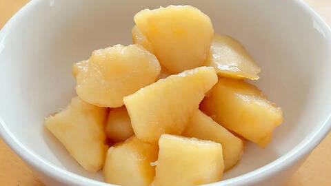 1: ボウルにじゃがいもを入れて、濡らしたクッキングペーパーをかぶせます。ラップをかけ、レンジ600Wで4分加熱します。