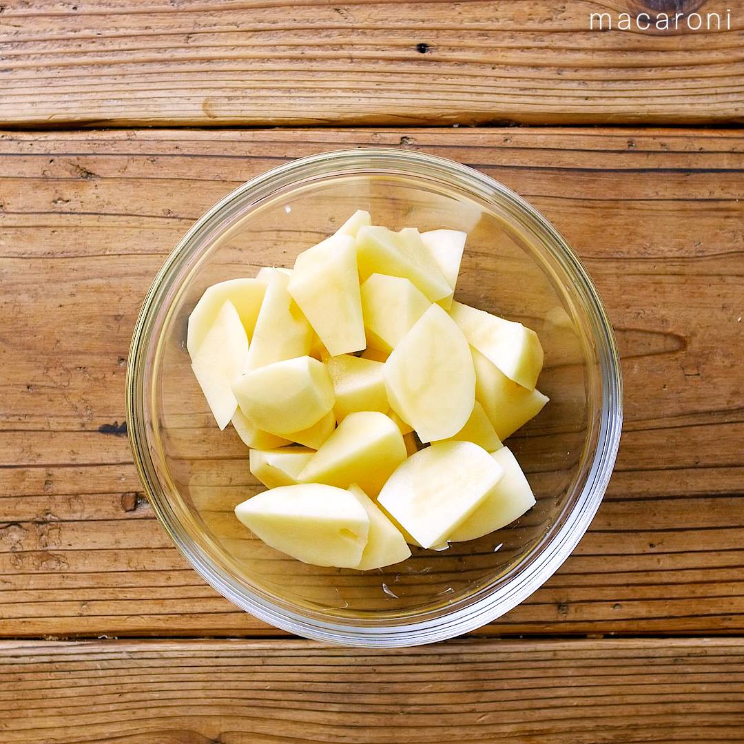 ・じゃがいもは皮をむき、4cm幅の乱切りにします。