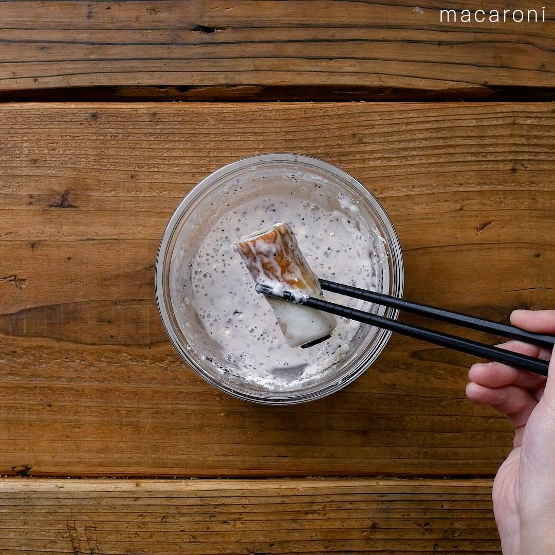 3: 衣を混ぜ合わせ、②をくぐらせます。