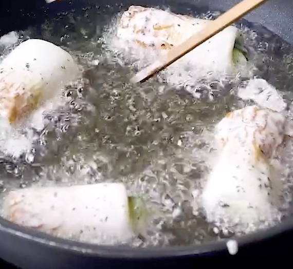 4: フライパンにサラダ油を深さ2cmほど入れて170℃に熱し、③を入れます。カリッとするまで揚げたら完成です。お好みでポン酢しょうゆをつけて召し上がれ♪