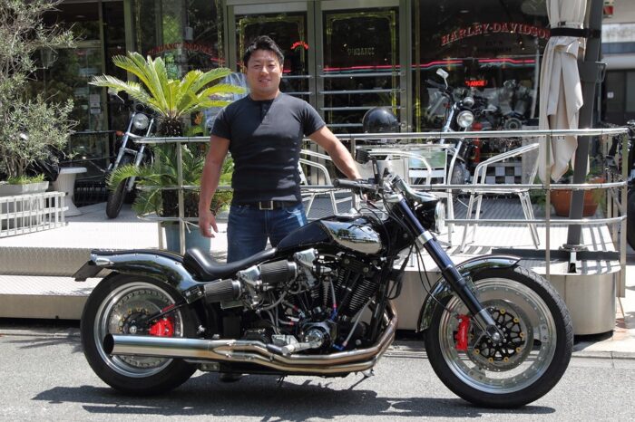 2012年に、あの所ジョージさんが渋谷のヒカリエで開催した「自動車ショウ」で目にして以来、ひと目ぼれしたマシンを12年越しに縁あって手にすることとなった相楽輝さんは、その名字からもおわかりの通り上の誠さんのご実弟。もともと好きだった車両だが現在はハンドルやシート、リアサスなどを自分なりにモデファイし、カスタムを楽しんでいるという。以前に乗っていたスポーツスターと比べて2030㏄のスーパーXR-TCは、すべてが強烈とのことで「とにかく走るのが楽しい」と語る。