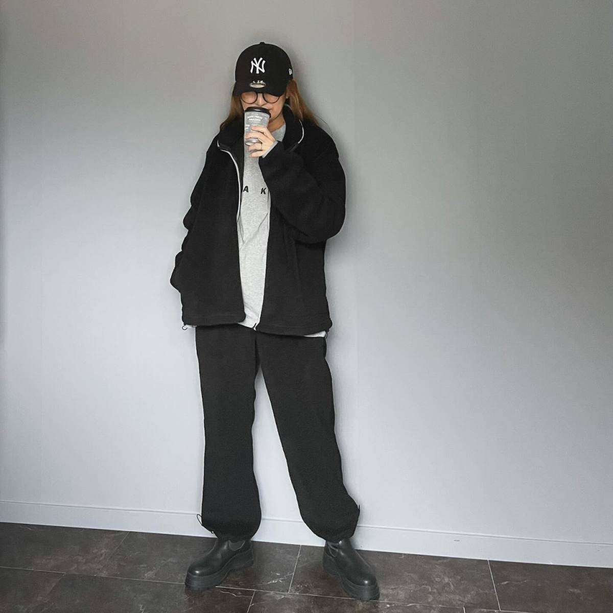 【11月編】老け見えしない黒パンツコーデ③スウェットのセットアップでカジュアルに!
