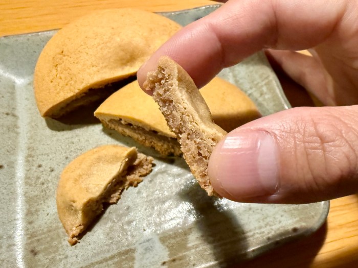 ただまあ正直な感想としては「巨大カントリーマアム」だ。旅館に出てくる饅頭を平べったくしてカントリーマアム状にした感じの存在感と食べ応え。通常版よりリッチな味わいである。