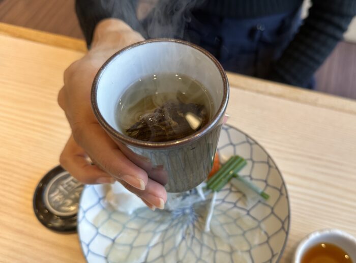 アツアツで香ばしい香りの ひれ酒:649円(税込)