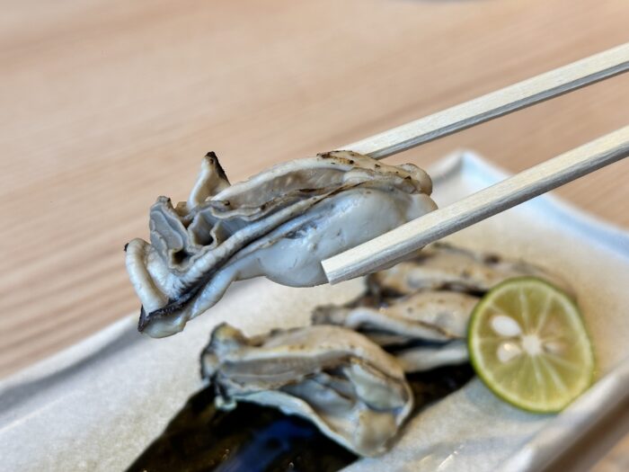 続いて濃厚でジューシーな蒸しがきと歯ごたえ抜群のホッキ貝炙り