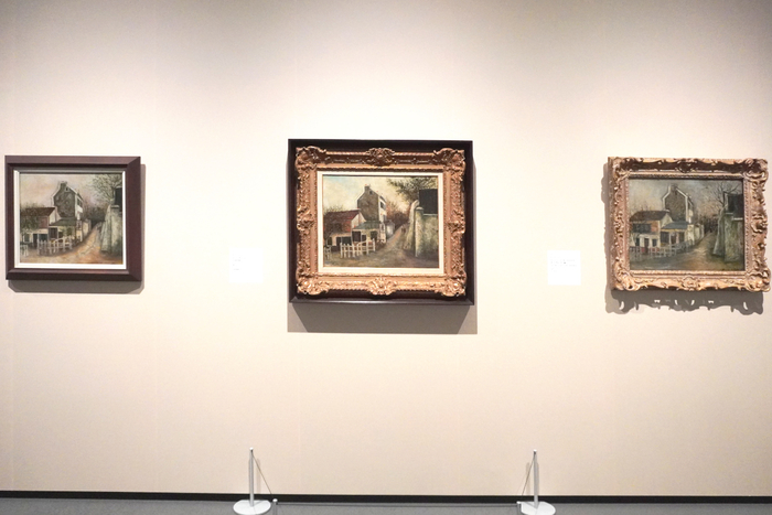 またユトリロは、同じモチーフを繰り返し描いた。キャバレーの「ラパン・アジル」はユトリロお気に入りの画題の一つで、絵葉書を元に描いていたそうだ。本展ではラパン・アジルを描いた作品が9点程度出展されているので、天気や季節が異なる同店の姿が堪能できる。