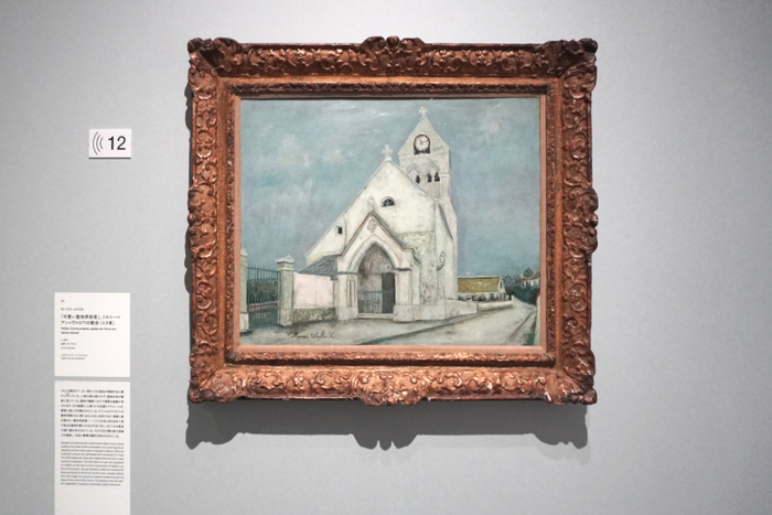 ユトリロはキリスト教を篤く信仰していたとのことで、宗教施設を画題にした作品が多い。《「可愛い聖体拝受者」、トルシー=アン= ヴァロワの教会(エヌ県)》や《廃墟の修道院》の教会や修道院は、ユトリロの「白」が持つ豊かな質感により、物憂げで静謐な雰囲気が際立つ。