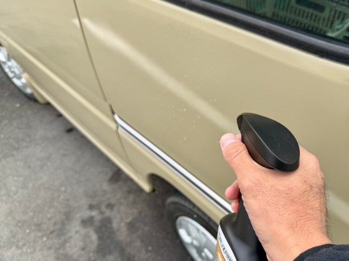 今回は洗車後にしっかり拭き上げてからスプレーをすることにした。スプレータイプだから使いやすいぞ。