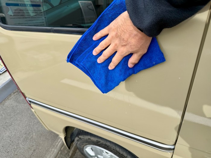 濡れたボディでも使えるが、乾いたボディに使用するとより一層の効果を発揮するらしい。どっちにしても洗車の仕上げに使えばいいだろう。
