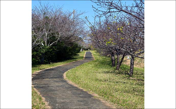 西寄りの風を背負えるため冬期に人気のポイント。北寄りが深くタチは1本半。南に寄るにつれて浅くなり遊歩道付近で1本強。水深がある北寄りのほうが魚は濃くアタリ出しも早い。なお、小池の竿規定は10尺まで(ローカルルール)。