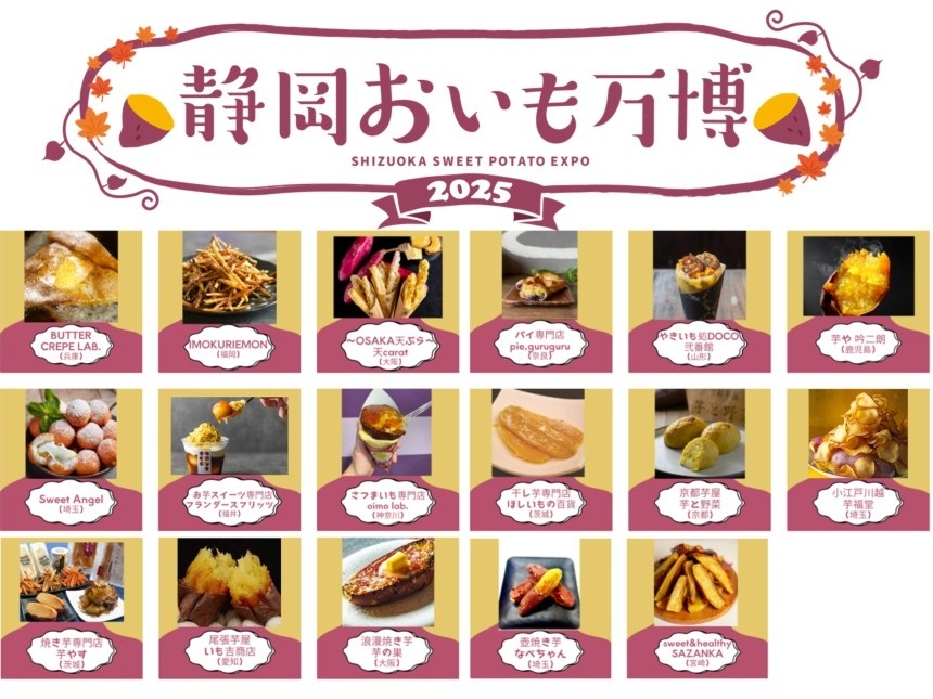 テレビ静岡とエスパルスドリームプラザが主催する静岡おいも万博は今回が3回目。2025年は全国各地から人気の17店が参加します。