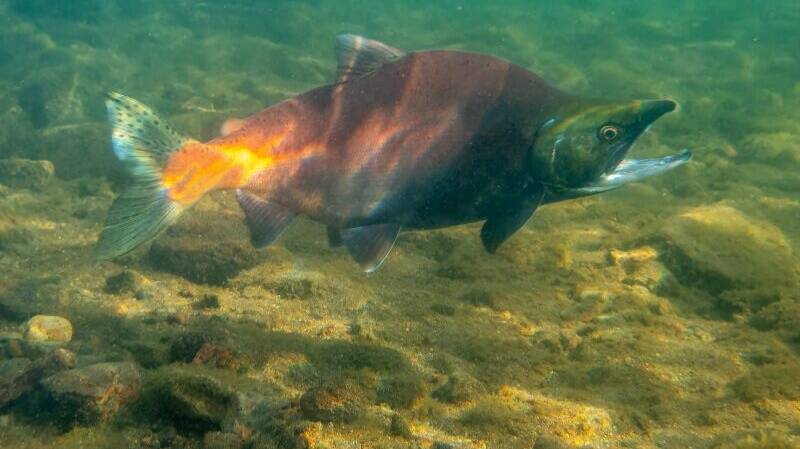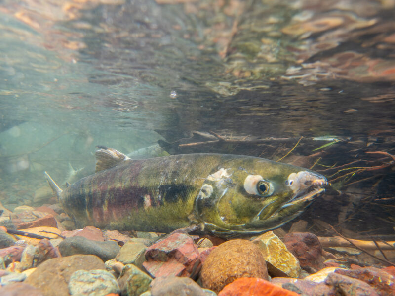 これから死にに行く、人生(鮭生?)最後の大舞台にこんな美しい色彩が現れるという、自然が意図せず創り出した美しい光景に思わず唸ってしまいます。