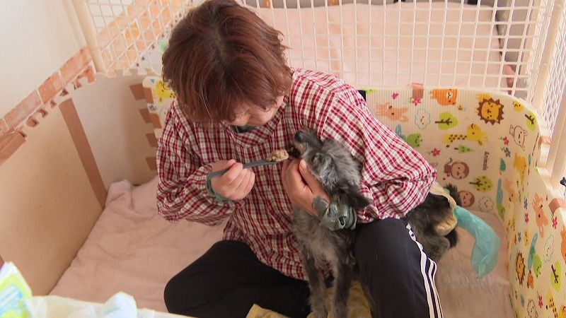 おむつを替え、薬も飲ませ…預かっている犬の体調や好みに合わせて、食事を用意します。
