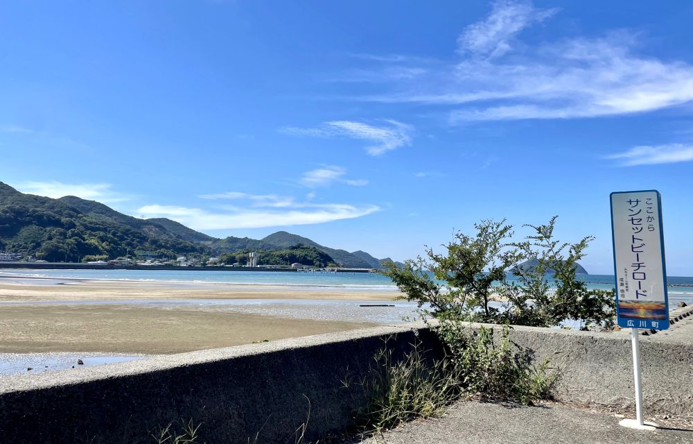 御坊湯浅道路の広川インターから西広海岸まで車で約6分。近くのサンセットビーチロードと呼ばれる海岸線をドライブして「Nico Boo(ニコブー)」へ。