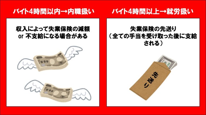 ・4時間以上働くと「就労」とみなされ、その日の手当が後ろ倒しになる