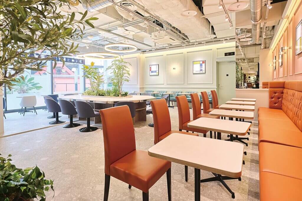 店内は開放的で洗練された空間。Wi-Fiやコンセントが利用でき快適に過ごせます。