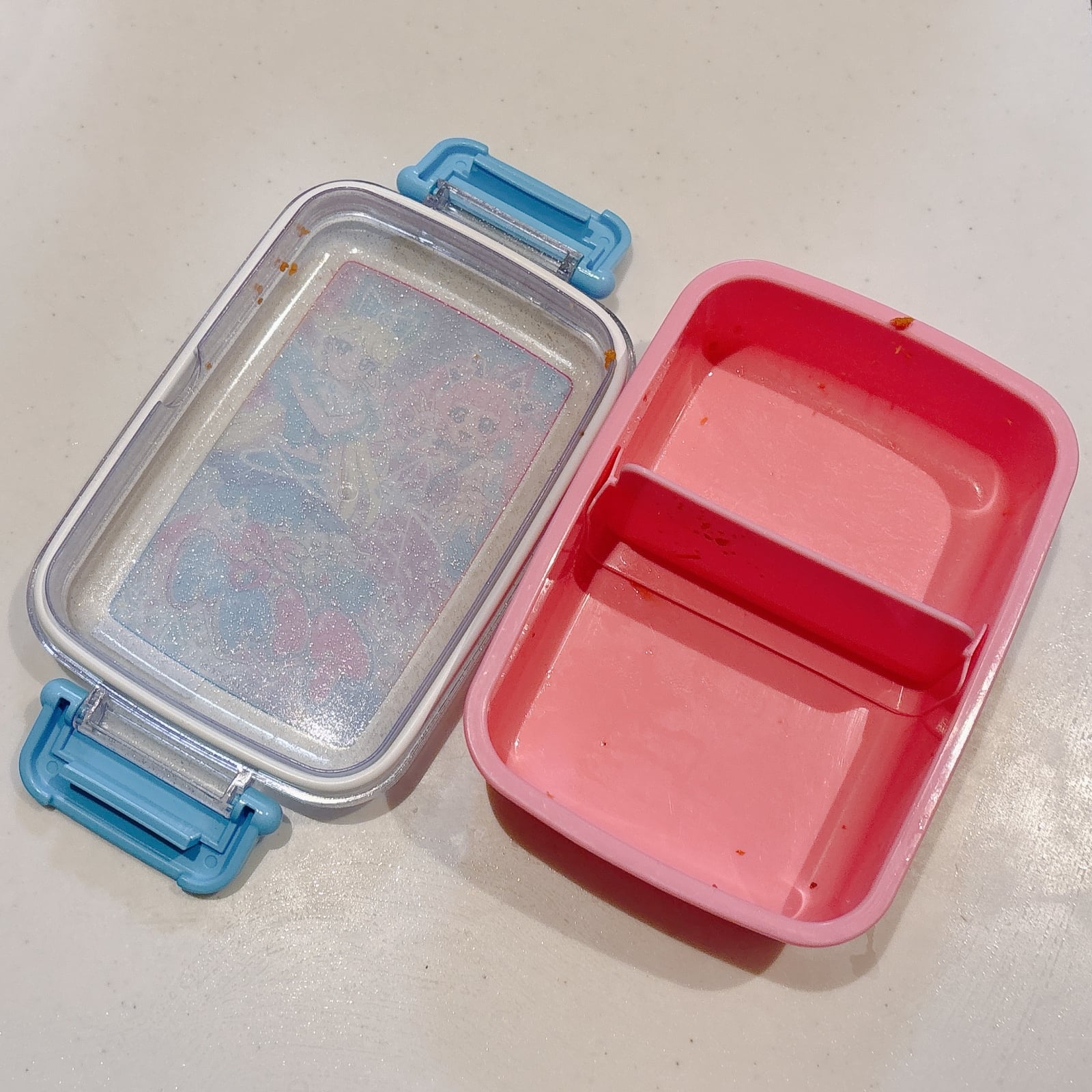 使っているうちに、臭いが気になるお弁当箱。じつはこれも、キッチン泡ハイターを使うと臭いがとれます。