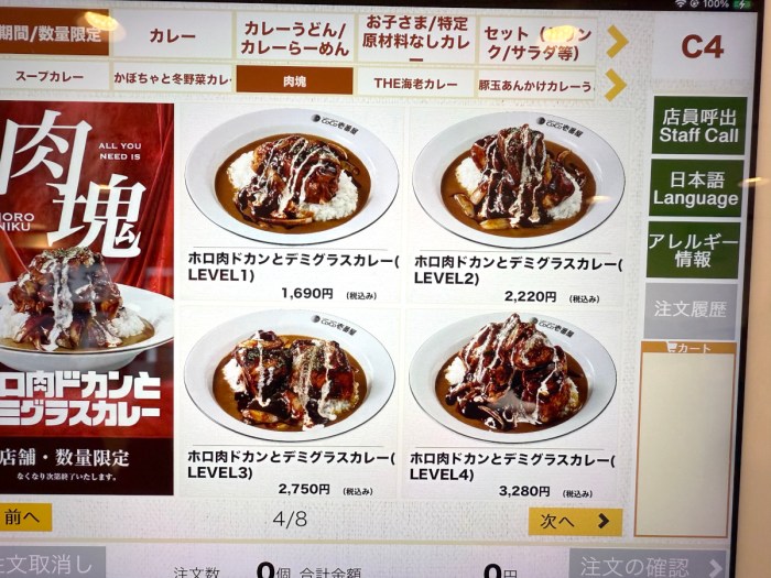 価格は前回と変わらず、レベル1が1690円、レベル2が2220円、レベル3が2750円、そして最大のレベル4が3280円となっている(イートインの場合)。