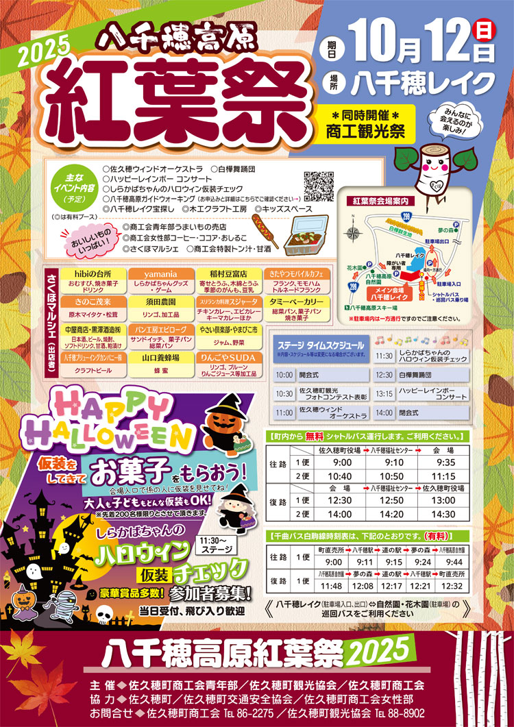 10/12(日)秋色の高原で楽しもう!『2025八千穂高原紅葉祭』マルシェやキッズイベントも!ハロウィンの仮装した来場者にはお菓子プレゼント@長野県 佐久穂町