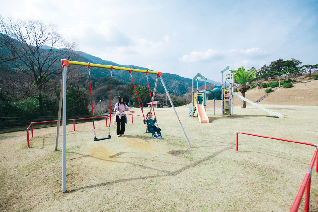 四国中央市の市街地を望む公園。園内は散策しやすく整備されており、駐車場が近いのもうれしい。遊具が併設された子ども広場のほか、展望台やピクニック広場、ベンチもあり、子どもだけでなく大人も時間を忘れて過ごせる場所。夕方や夜の夜景も美しい。