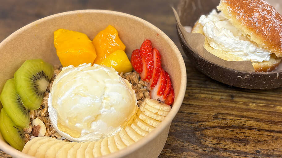黄色の壁がかわいいお店