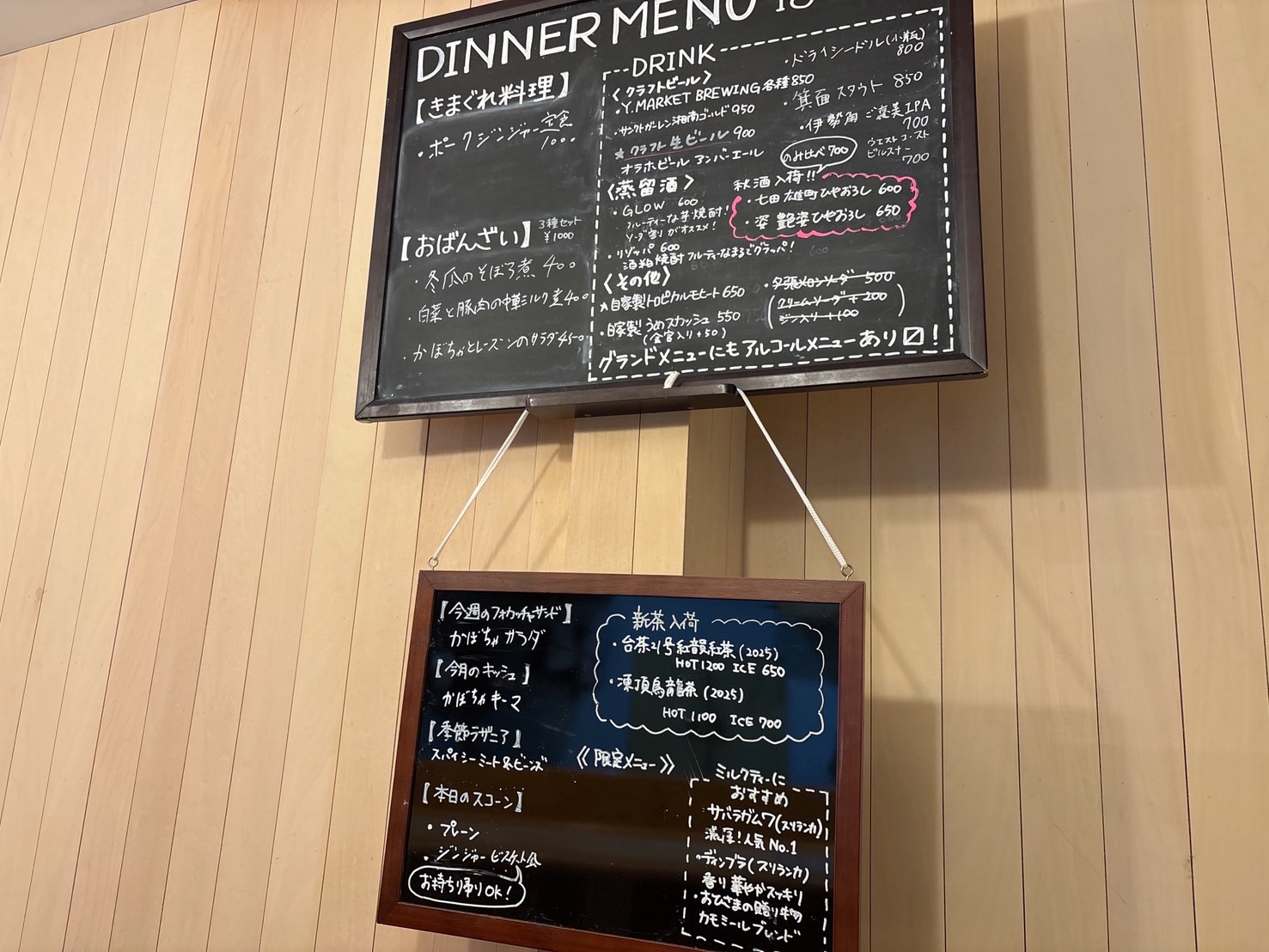 スコーンは黒板に書かれた中から1種類、紅茶はメニューの中からお好きなものを選べます。