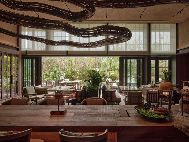 シグネチャーレストラン「P72」では、有機野菜や発酵食材を使ったメニューに加え、「紅ズワイガニのタルタル」や「あんこうのロースト」など、この時期ならではの味覚が勢ぞろい。木の温もりと柔らかな灯りに包まれながら、旬の恵みを一皿ごとに味わえます。
