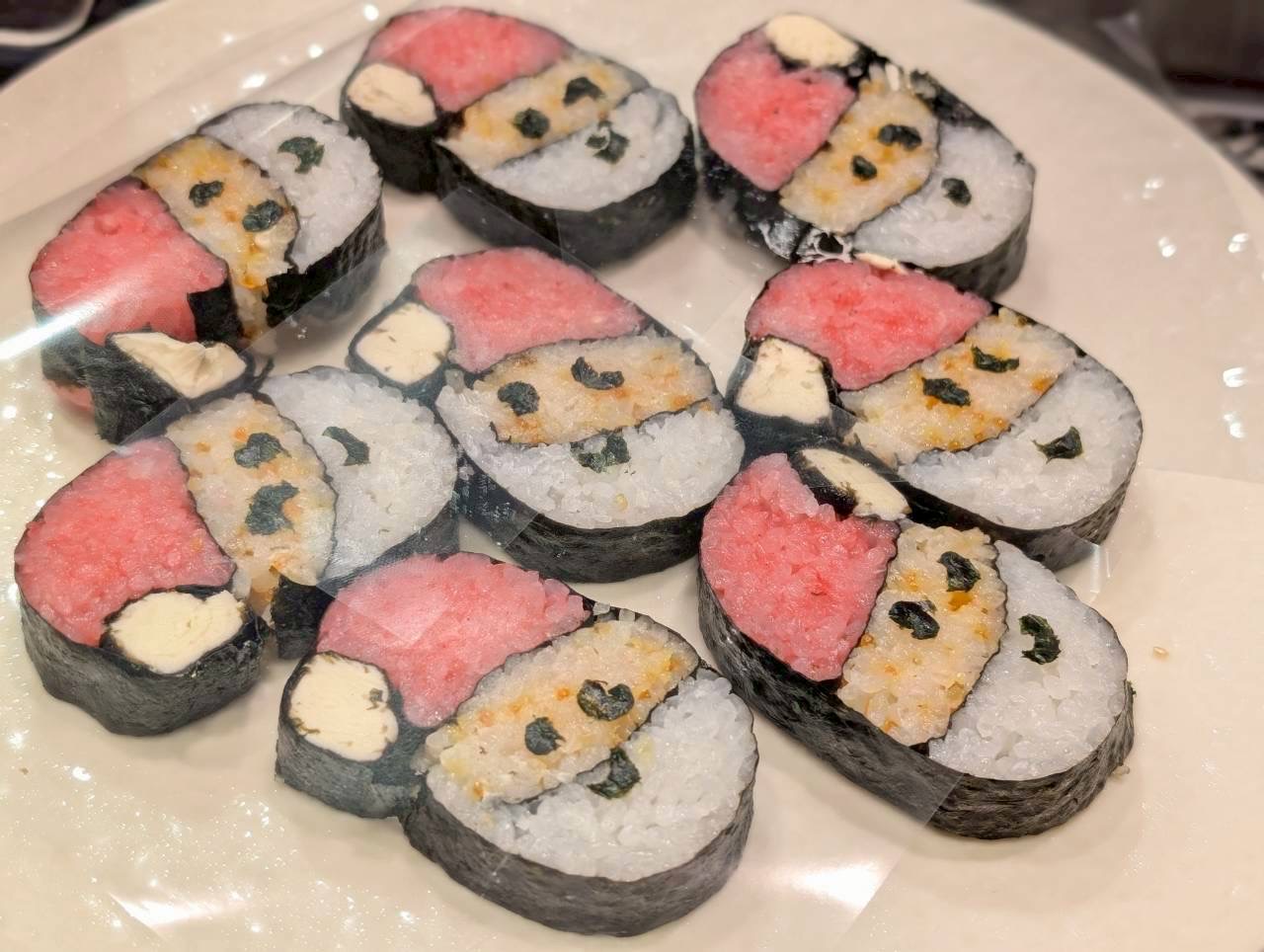 こちらの巻き寿司は、サンタさんの形をしており、一人ひとりお顔が違いました♪