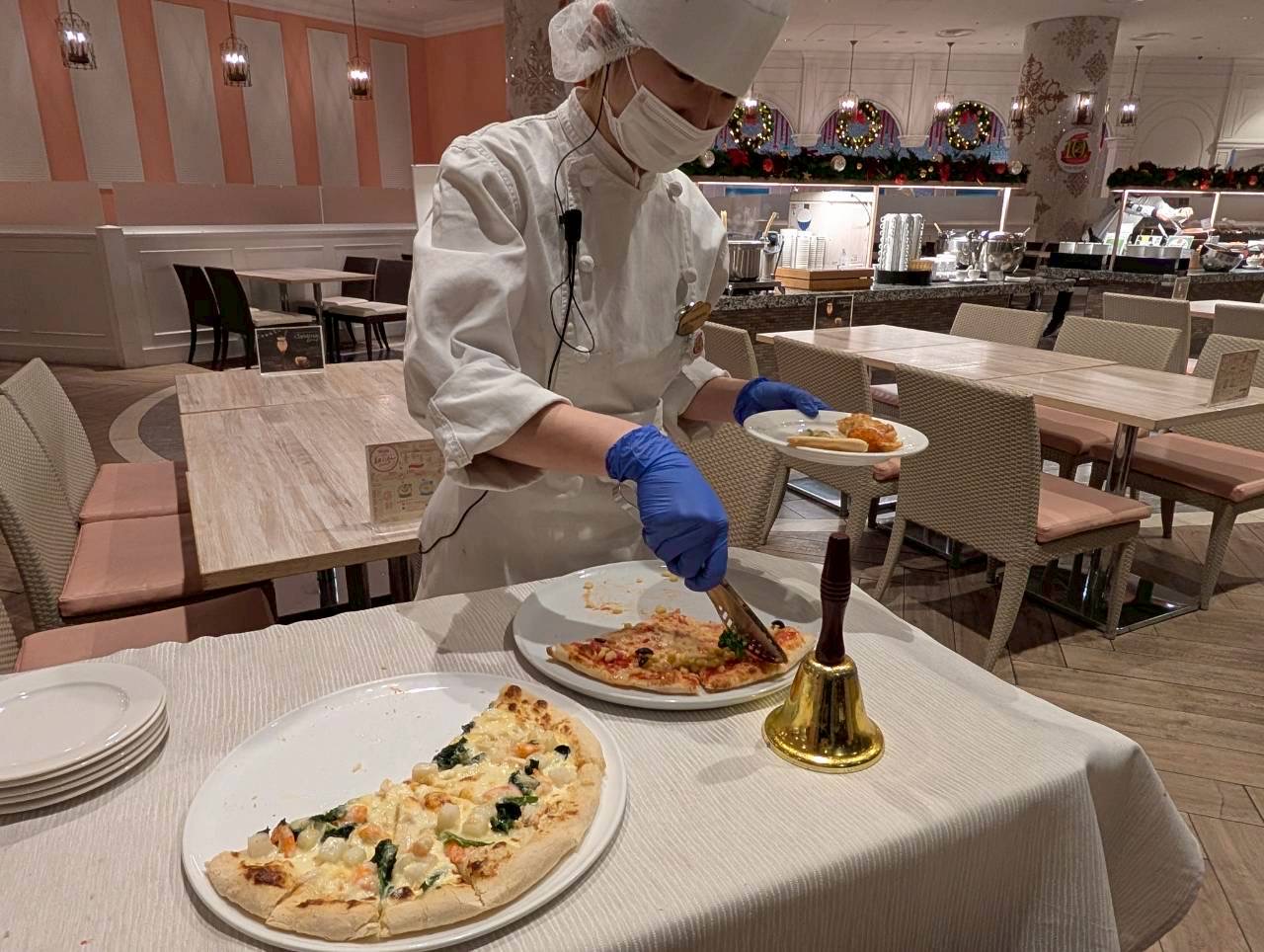 手作りピザを焼き立てでお席まで運ばれてきました♡