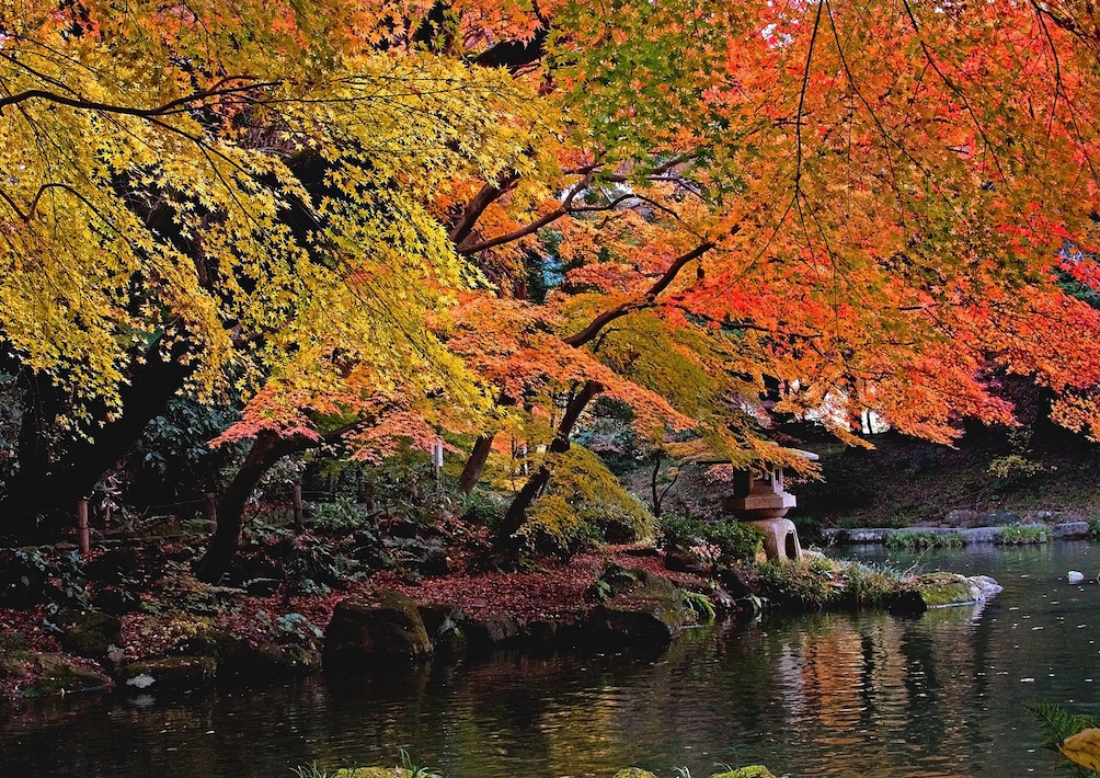 北総エリアで紅葉狩りをするなら、広大な規模の成田山公園は、おすすめのスポットです。モミジ、クヌギ、ナラ、イチョウなどの約250本の樹木が、美しく色づきます。