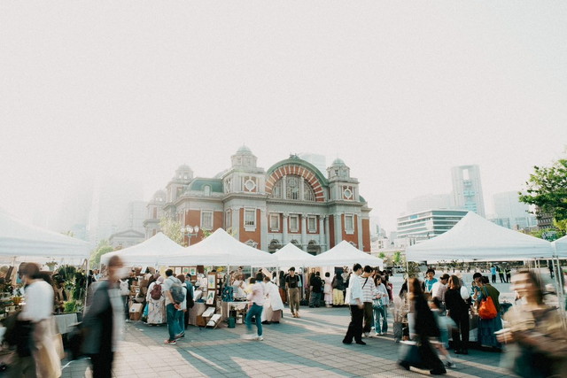 レトロな趣がすてきな中央公会堂の前で、不定期に開催されている蚤の市です。アンティークや古道具、雑貨、洋服、北欧ファブリック、バッグ、アクセサリー、コーヒー、焼き菓子など多彩な品ぞろえが魅力。デザイナーやスタイリストも出店するので、インテリアやアクセサリーにこだわる人はぜひ訪れてみて。