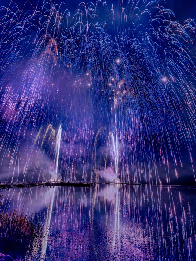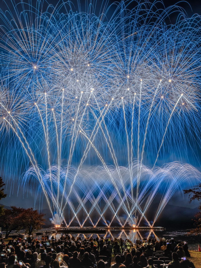 “鏡湖”とも呼ばれるほど穏やかで美しい湖面を誇る余呉湖にて、1日限りの荘厳な花火大会を開催! 音楽とともに花火を打ち上げるミュージックスターマインをはじめ、水中花火、スターマインなどが、夜空と湖面を鮮やかに染め上げます。