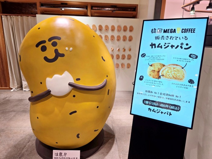 お店の名前が「カムジャバト」で、そこで売っているパンが「カムジャパン」という名前みたいだな。韓国語だと “カムジャ” が “ジャガイモ” って意味らしい。