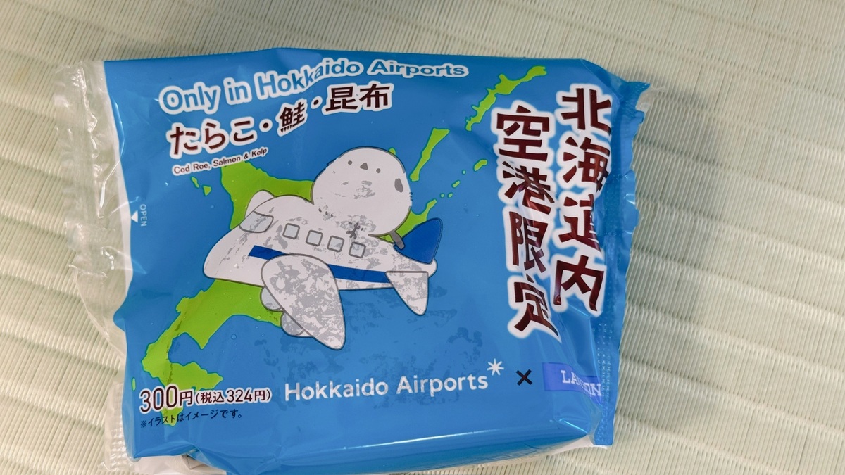 北海道内の空港限定×ローソンの商品で1つのおにぎりにたらこ・鮭・昆布の3種類の味が入っているとのこと。