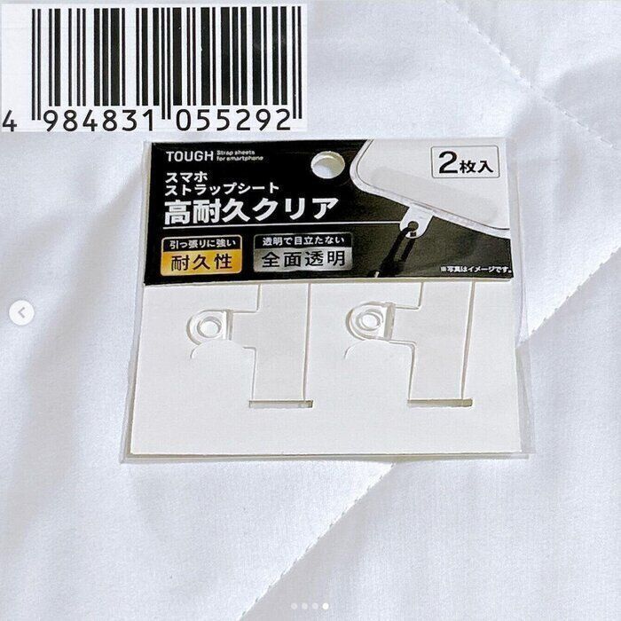 まりさんがセリアで購入したのは、スマホとスマホケースの間に挟んで使う「スマホストラップシート 高耐久クリア」。耐久性に優れていて、引っ張りに強いようです。透明で目立たないので、スマホカバーのデザインを邪魔しないのがうれしいですね。