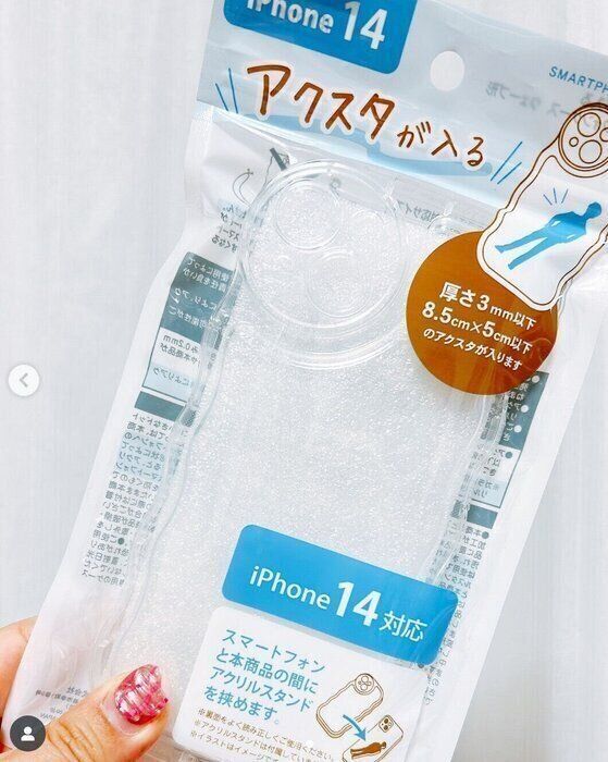 uta_daisyさんがセリアで購入したのは、厚さ3mm以下のアクスタが入れられるスマホケース。シンプルですが、ウェーブ型でおしゃれですよね。「ミニアクスタを毎日持ち歩けるの最高すぎる」とのこと♪