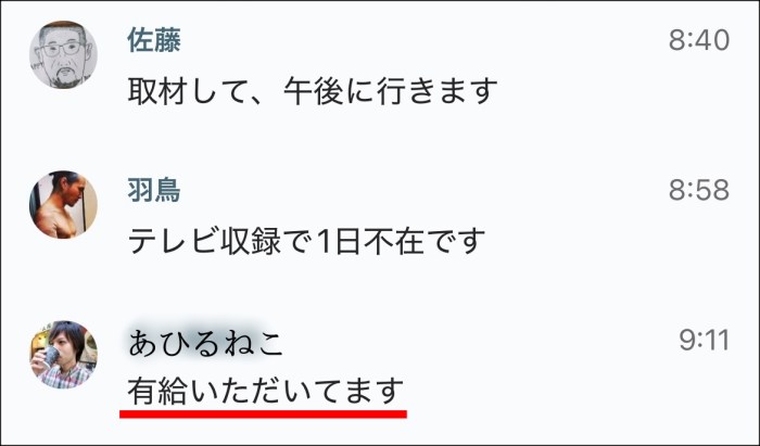 有給なのに出社してきた私を見て「え、どうした?」と怪訝そうな顔をするメンバーたち。ちょっと近くを通りがかったので寄らせてもらいましたと、サザエさんの家にやって来る客人みたいなことを言っておいた。