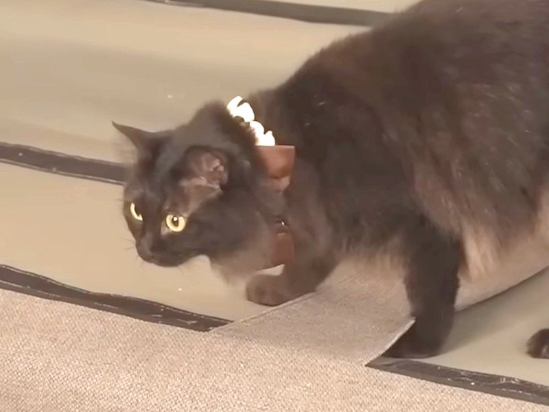 今からソファを持ち上げて動かそうというところに今度はみちこちゃんがやって来たんだそう。仕方なく飼い主さんはみちこちゃんをソファに乗せたまま予定より3kg増えた状態のソファを移動させました。ソファが動いていることもお構いなしで堂々と佇むみちこちゃん。しかしこの後、みちこちゃんに思いもよらぬハプニングが発生したのだとか。