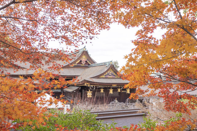 国宝御本殿と紅葉の織りなす風景が見事です。こちらには、紅葉が密集していて、存分に楽しめました。高いところから、ご本殿を眺められるのも貴重です。