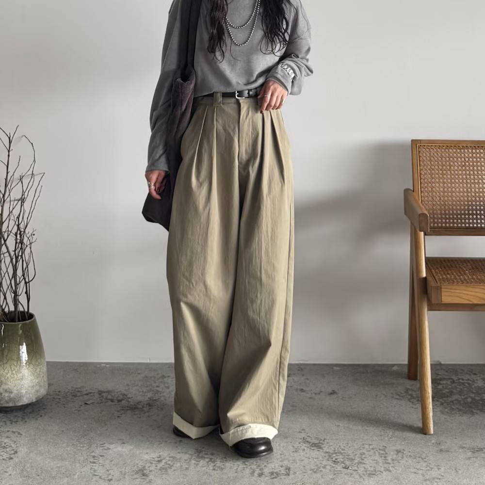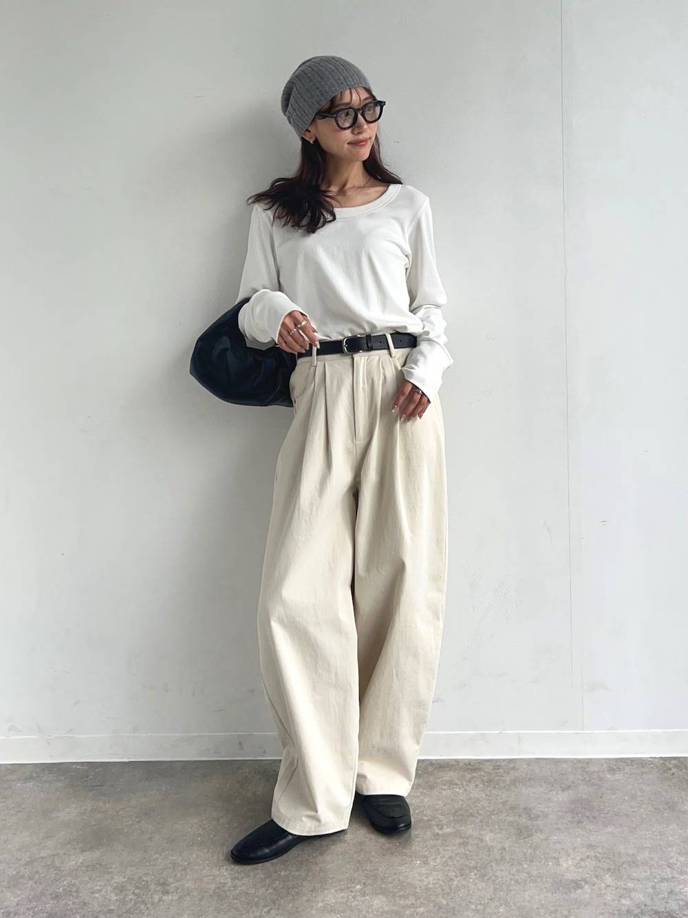 タックが入ったワイドパンツは脚のラインを拾わないので、体型が気になる方も穿きやすいアイテムです♡