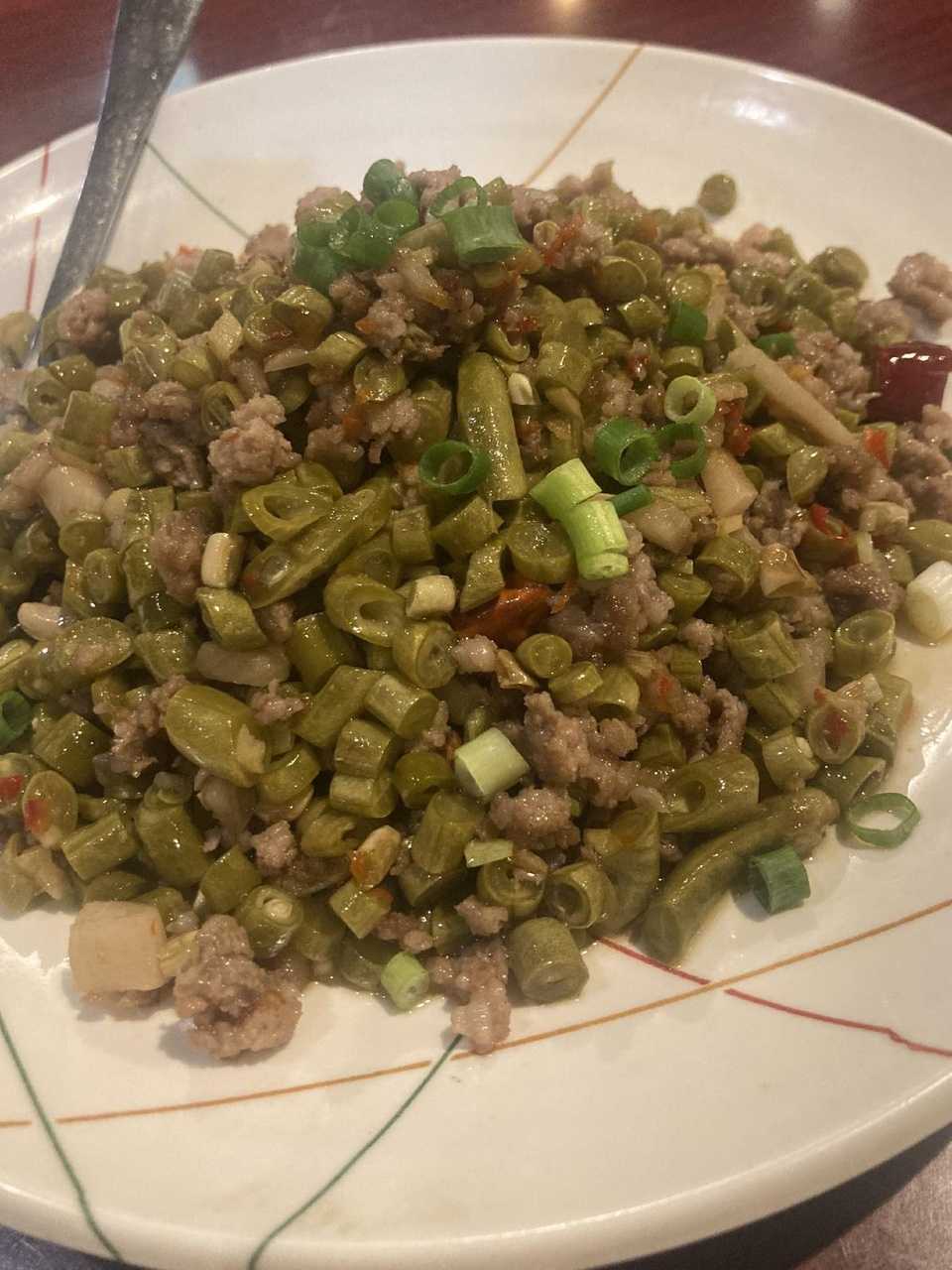 酸豆角肉末(サンドウジャオロモ:ささげと挽肉炒め)