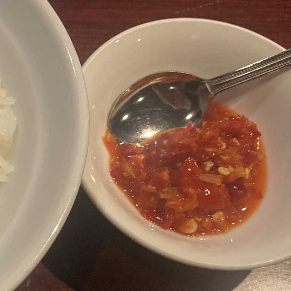 刻んだニンニクや生姜も入って爽やかな味で、そこまで辛くないです。店員さんの話では、これを使った炒飯が人気だそうです。
