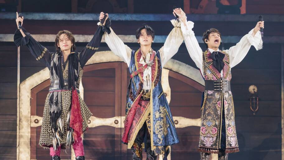 HIKARUがメンバーを紹介し、披露されたのは完成したばかりのアルバムの中からの新曲「月の小径」。スクリーンには地球滞在期間を終えたISSAYの姿を思わせる美しいアートワークが映し出され、ISSAYの歌声が中心に響く中、宙也とちわき、Ken-ichiのコーラス、メンバーの演奏が加わっていく演出は、集まったファンを感涙させた。