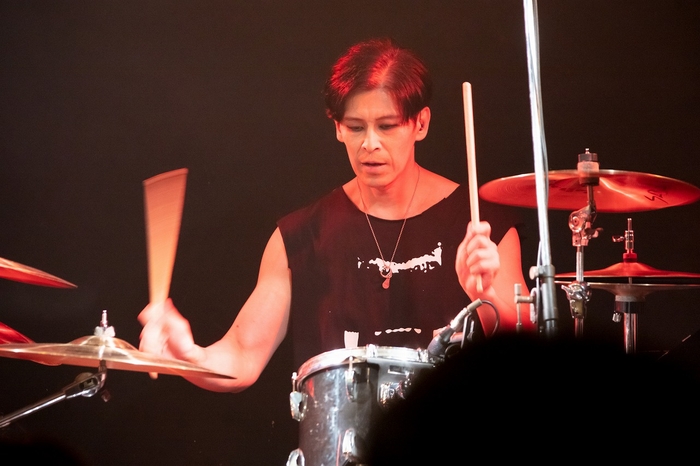 そして、この3人が身を委ねられるメンバーのプレイはDER ZIBETの2人にとってはオリジナル曲だとしても、恐るべき対応力。情感豊かでフレーズのセンスが光るMAHITO、HIKARUとの息もピッタリな米澤の緻密にして熱いギター、押し引きが絶妙なJUNのベース、タイトで無駄がなく楽曲を押し上げていくMOTOKATSUのドラミングはもはや、バンドに近いぐらい阿吽の呼吸に達していた。
