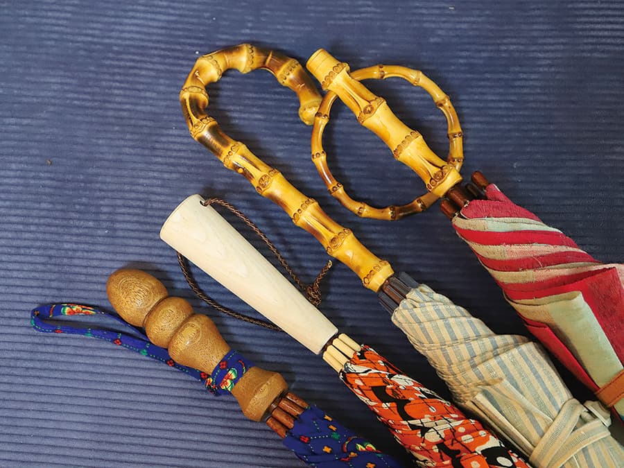 柄(ハンドル)に露先、石突き、バンド、その留め具などの細かなパーツも木や竹、アクリルといった多彩な素材・デザインのものから自身の感性で組み合わせていく。こうしてできあがる日傘は一つとして同じものがない一点モノ。これも人気の要因だ。