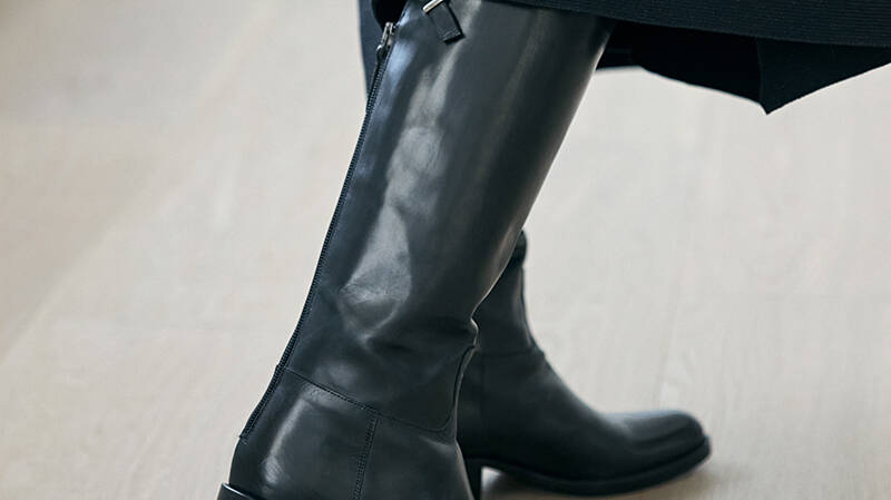 濃い色のボトムスはメンズライクな印象になるので、アイボリーなど柔らかい色味を合わせるのが◎。