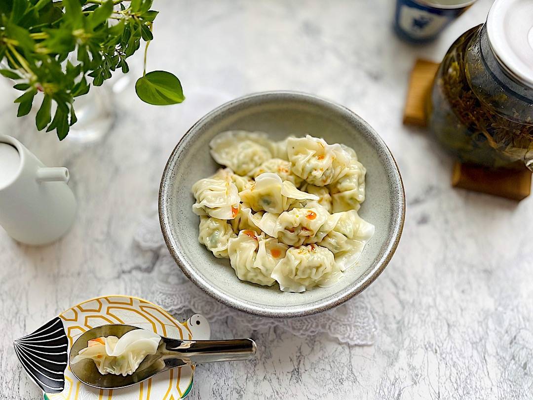 水餃子そのものにも味がしっかりついているので、そのままでもおいしく食べられますよ。醤油+お酢で作るタレやラー油はお好みで。