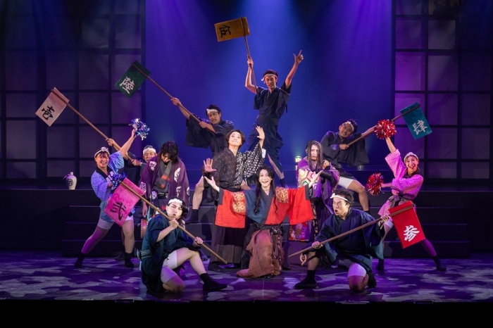 本作の魅力は、痛快かつ華やかな“お祭り感”だ。ダンスや殺陣といった視覚的に楽しめる要素がふんだんに盛り込まれているだけでなく、クスッと笑えるギャグも満載で、肩肘張らずに楽しめる。特に序盤に展開される「飛脚レース」は、演劇らしいワクワク感たっぷり。神輿行列を眺めるような感覚で目を輝かせていたら、気づけば「しにつか」ワールドに引き込まれている。