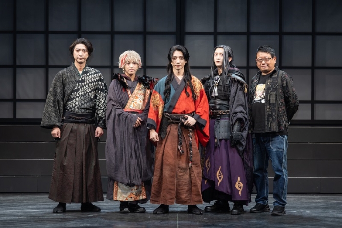 初日に先駆けて行われた囲み会見には、久坂幻士郎役の鈴木拡樹、十蘭役の安井謙太郎、最恐の死神・無限狼役の梅津瑞樹、幻士郎の幼なじみで同じ死神遣いである鉄斎役の鈴木裕樹に加え、脚本・演出の毛利亘宏が登壇。