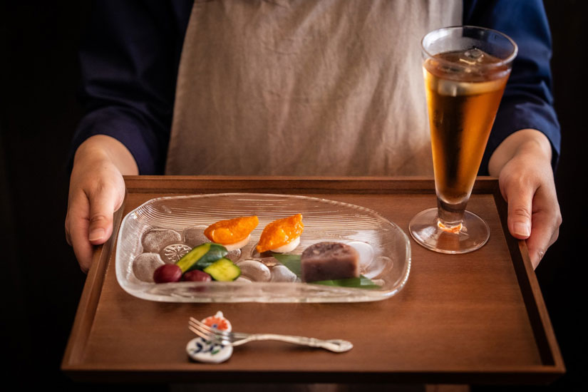 信州の持ち寄りおやつの文化を再現したおやつ3点盛りとお好みのソフトドリンクがセットになった「季節の信州おこびれセット」(1,000円)。「おこびれ」とは信州の方言で「おやつ」のこと。昔はご近所で手作りおやつなどを持ち寄って休憩する習慣があり、信州の伝統文化を一皿で体験できます。